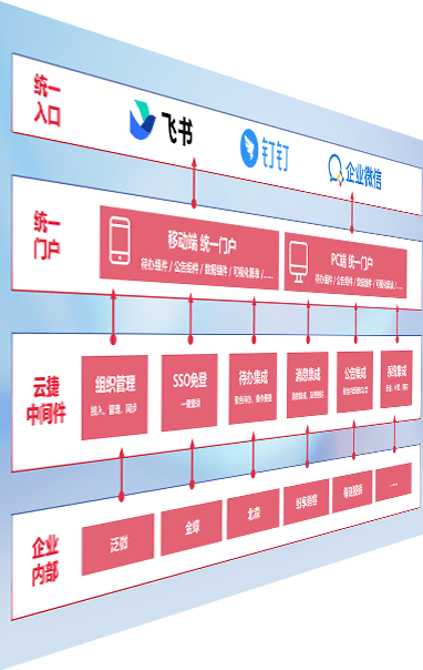 对协作平台提供支持服务,,,支持企业应用与协作平台对接,,,包含组织同步、、消息集成、、、、待办集成等。。。。支持目前主流的协作平台:钉钉、、企微和飞书。。。。